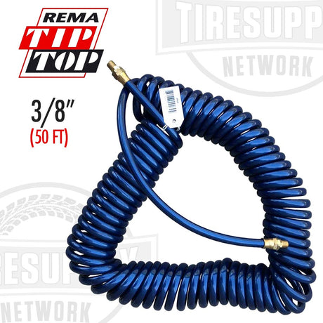 Rema | Polyurethane Coil Air Hose 3/8″ I.D. x 50′ Length with 1/4″ MPT Ends (844P)