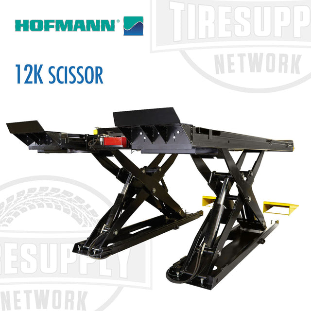 The Hofmann 12k Scissor Alignment Lift is a rugged 12,000 lb capacity scissor alignment lift with an open front design that provides easy access to alignment service and calibration areas.