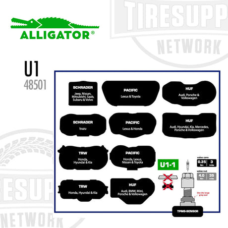 Alligator | U1 Universal TPMS Metal Valve Service Kit - Box of 20 (48501)