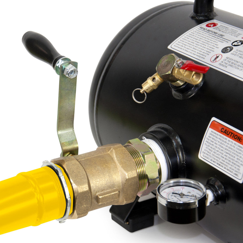 The Cyclone X-Series Bead Seating Tank offers two models for small and medium applications. Both models are equipped with robust air tanks, casted out of steel and ASME certified. The Cyclone X-Series Bead Seaters supply a hassle-free, simple solution to seat the beads on equipment tires ranging from golf carts up to heavy duty and construction application. The Cyclone X-Series 5-gallon Bead Seating Tank (Model #20390) is recommended for small and passenger tire application. The Cyclone X-Series 10-gallon Bead Seating Tank (Model #20391) is recommended for most commercial tire sizes, skid steers and some tractor tires.