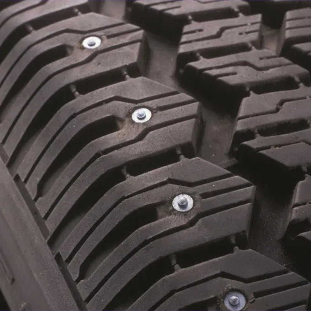Tire studs increase tire friction on icy surfaces enabling drivers to stop sooner, accelerate quicker, and maintain control on turns.