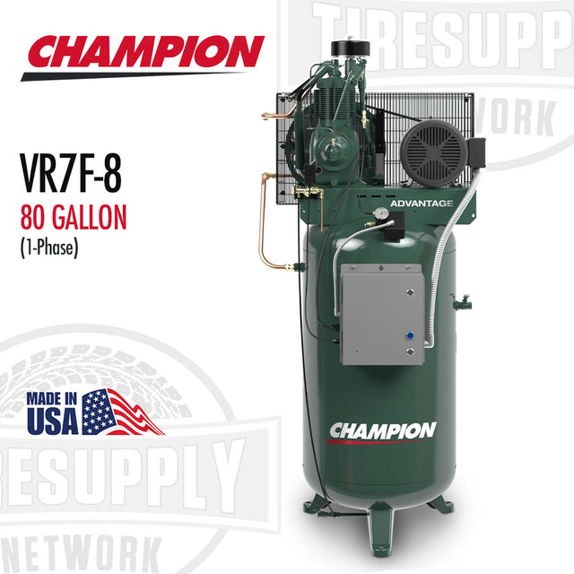 Champion VR7F-8 Air Compressor with Aftercooler, Starter Auto Tank Drain, Low Oil Monitor, and Vibration Pad - 230V, 1PH, 7.5HP, 80GL (CASRSA42)