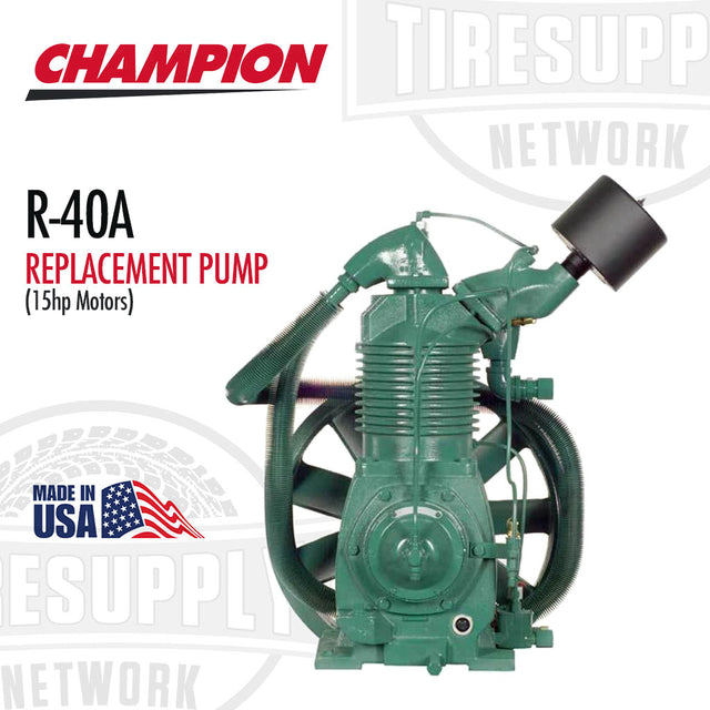 Champion's R40A Pump is used on many of their top selling compressors, including the R-series and the popular Advantage Series of packaged air compressors. The R40A is rated for operation with 15 HP motors.