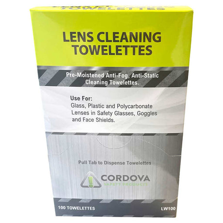 Cordova Safety Products | Lens Cleaning Wipes - Box of 100 Individually Wrapped Towelettes (LW100)