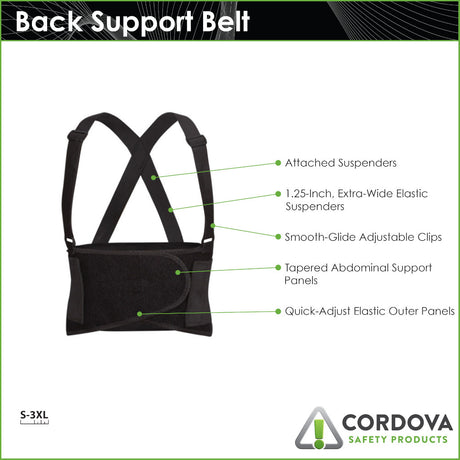 Cordova Safety Products | Industrial-Style Black Back Support Belt - Choose Size (SB-S)
