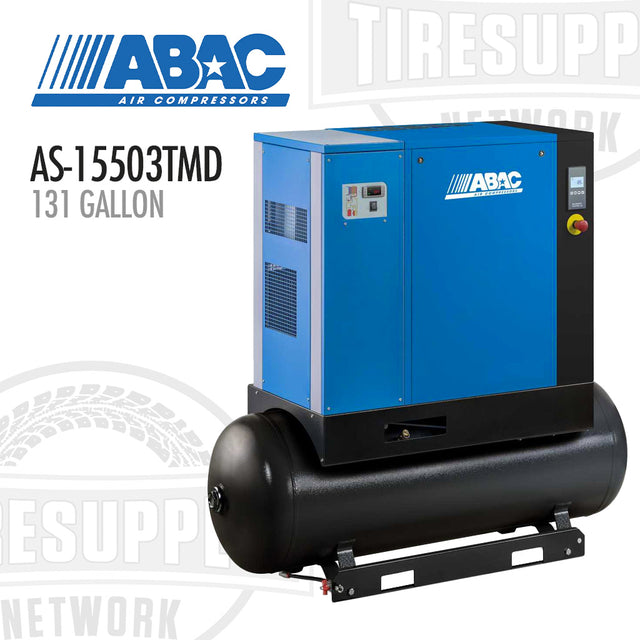 ABAC | Single Phase 15HP, 131 Gallon Tank Mount with Dryer 150 PSI Screw Compressor (AS-15503TMD)
