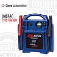 The JNC660 delivers 1700 Peak Amps and 425 Cranking Amps of starting power and weighs just 18 lbs. Perfect for a variety of professional starting environments, including automotive service, fleet service, auto dealerships, auto auctions, marinas, implement dealerships and more. Give it a try and you'll see why it's the choice of Pros the world around. Meets efficiency requirements for sale in California and Oregon.