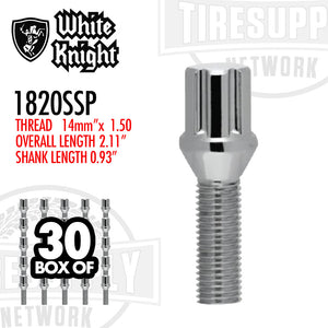 White Knight | Chrome Spline Lug Bolt with 24mm Shank - Thread Size 14mm x 1.50 - Box of 30 (1820SSP)