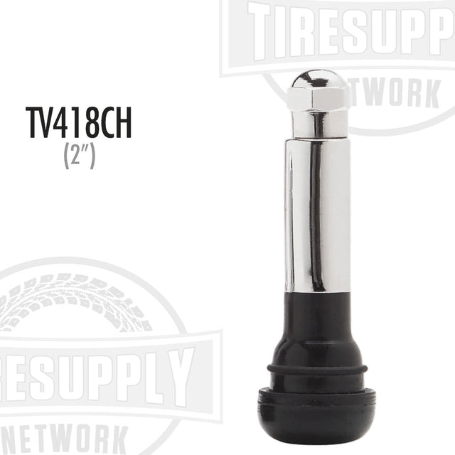 2" Rubber Chrome Sleeve Snap-In Valve Stem (TV-418CH) - Single Stem is backordered and will ship as soon as it is back in stock.