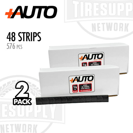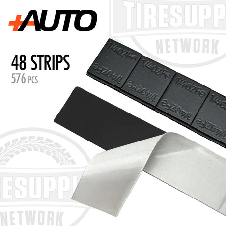 +AUTO | Steel 1/4 oz Stick-On Adhesive Tape Wheel Weight - 48 strips | 576 pcs | Black (PP25S48B576)