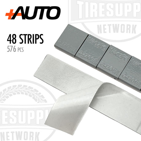 +AUTO | Steel 1/2 oz Stick-On Adhesive Tape Wheel Weight - 48 strips | 288 pcs | Black (PP50S48B288)