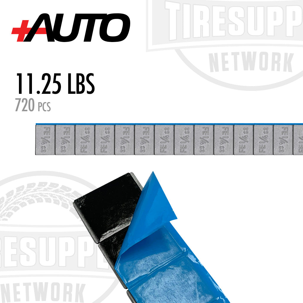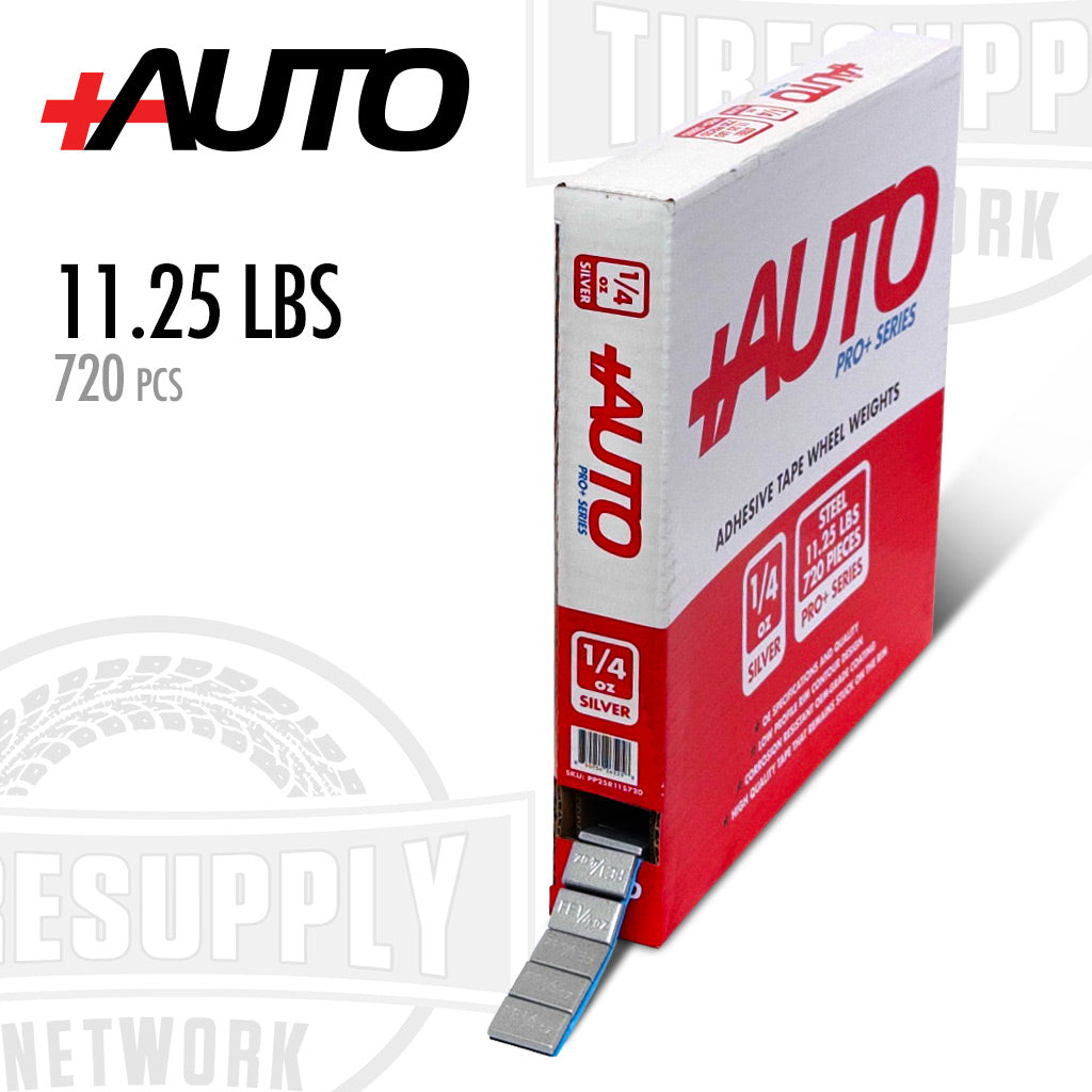 +AUTO | Steel 1/4 oz Stick-On Adhesive Tape Wheel Weight - 11.25 lbs | 720 pcs | Silver (PP25R11S720)