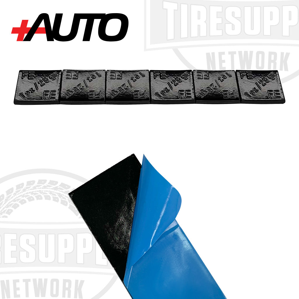 +AUTO | Steel 1 oz Stick-On Adhesive Tape Wheel Weight - 24 strips | 144 pcs | Black (PP100S24B144)