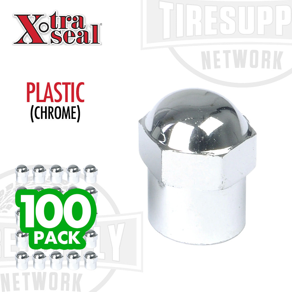 Xtra Seal | Chrome Plastic Hex Valve Cap with Seal - Box of 100 (17-493P)