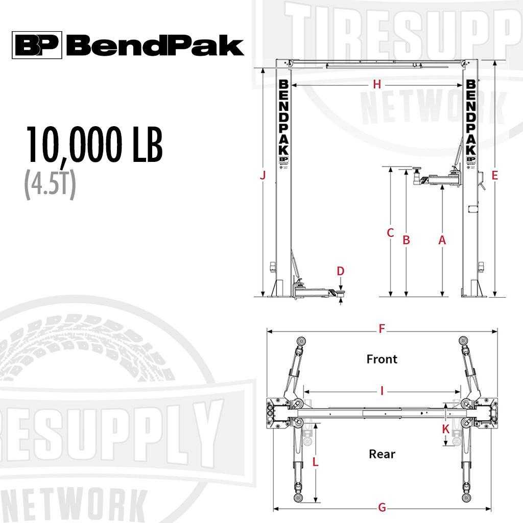 BendPak | 2-Post Lift 10,000 lb Capacity Clearfloor Standard - 10AP (5175304)