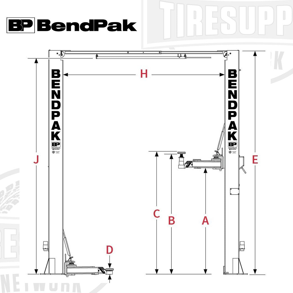 BendPak | 2-Post Lift 10,000 lb Capacity / Adaptable Clear-floor / Adjustable Width / High-Rise 10APX-181 (5175307) is backordered and will ship as soon as it is back in stock.