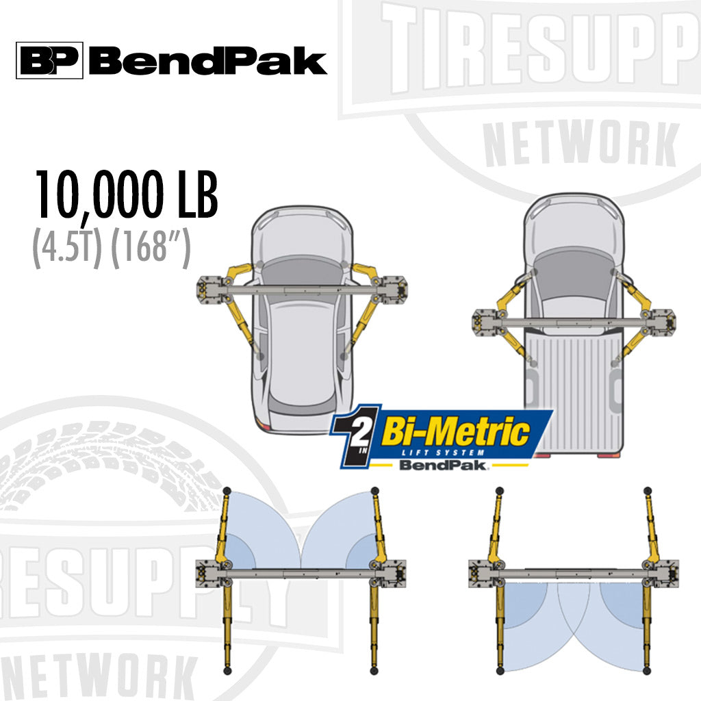 Exclusively designed BI-METRIC™ swing arms empower users with unprecedented flexibility. Capable of being set up in symmetric or asymmetric configurations, these arms eliminate the need for arm switching. This 2-in-1 design accelerates vehicle servicing, enabling operators to work faster than ever before. Elevate Your Business with BendPak's AP Series Embrace the future of automotive lifting with BendPak's AP series. This groundbreaking innovation redefines lifting standards, enhancing safety, efficiency, and versatility for auto repair shops. Equip your shop with the latest in lifting technology and experience the difference firsthand.