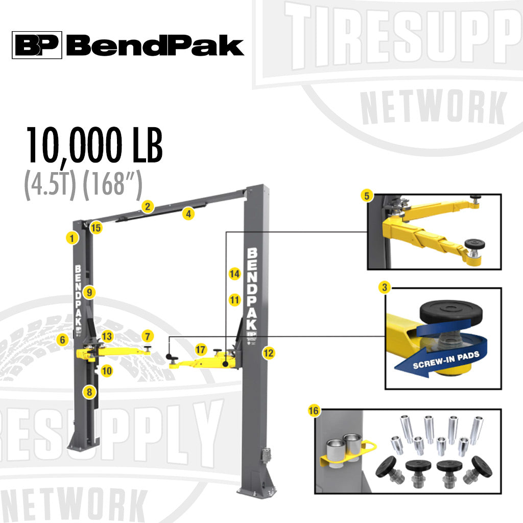 BendPak | 2-Post Lift 10,000 lb Capacity Adaptable Clearfloor - Adjustable Width - Screw Pads - 168" Overall Height - 10AP-168 (5175305)