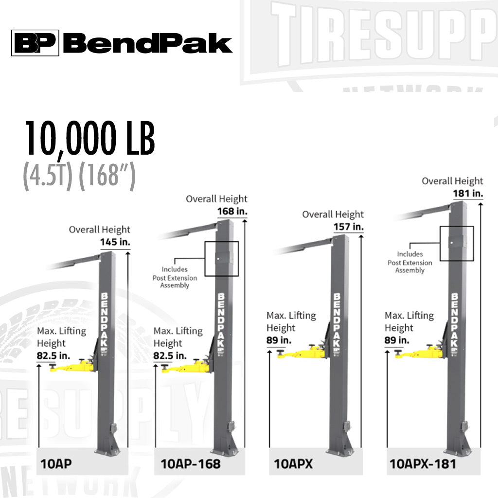 BendPak | 2-Post Lift 10,000 lb Capacity Adaptable Clearfloor - 168" Overall Height - 10AP-168 (5175305)