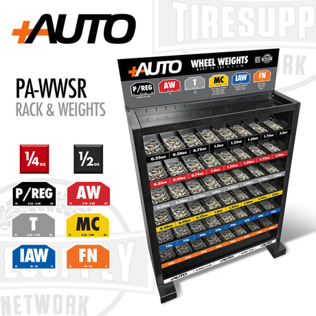 +AUTO | Wheel Weight Standing Rack: 8 Shelves - 46.5" x 36" x 16" HxLxW (PA-WWSR)