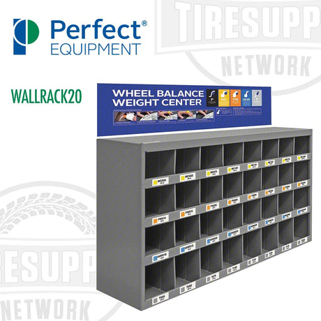 Perfect Equipment | Wheel Weight Rack: 4 Shelves - 19.25" x 34" x 8.5" HxLxW (WALLRACK20)