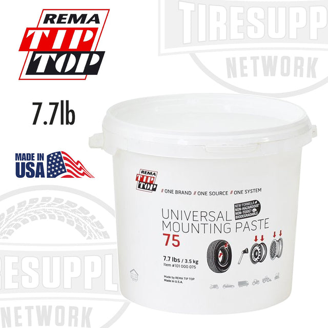 REMA TIP TOP's simple to use mounting paste is easily applied and will not corrode or discolor aluminum or alloy wheels. This fast drying formula will not freeze or harden and reduces wear and tear on tire changing equipment. Universal Mounting Paste makes mounting/demounting tires easier, faster, and reduces stress and damage to the tire bead.