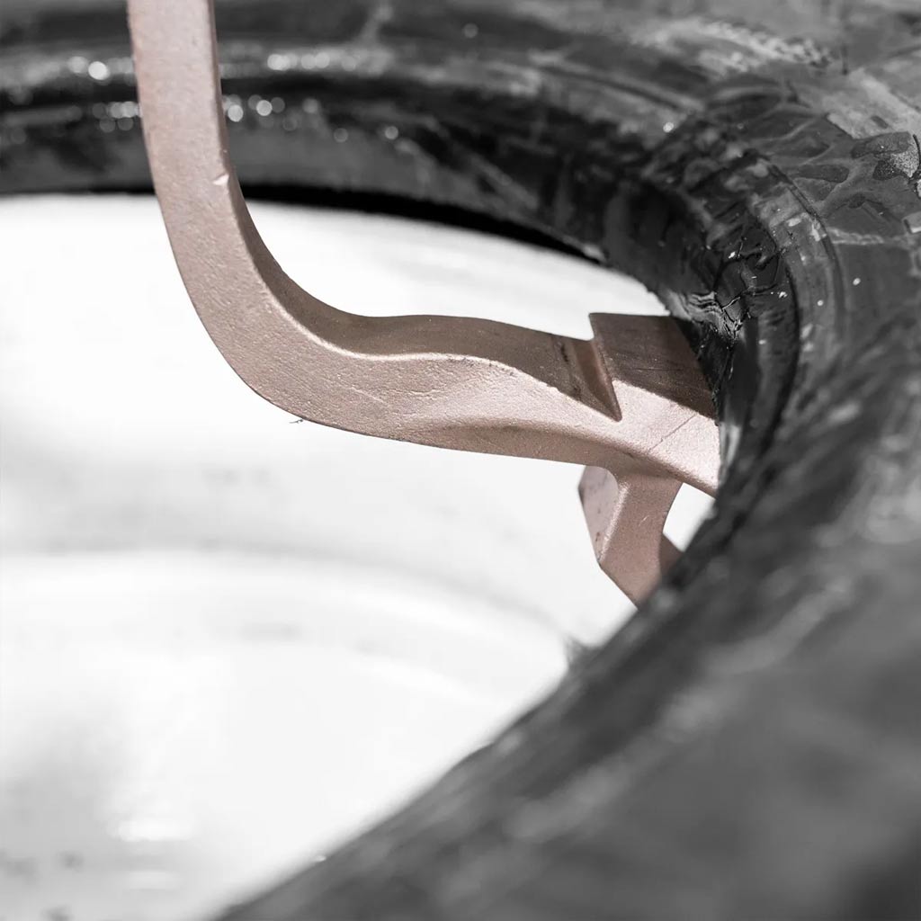 - Rollers at the ends of prying points prevent damage to the tire or wheel