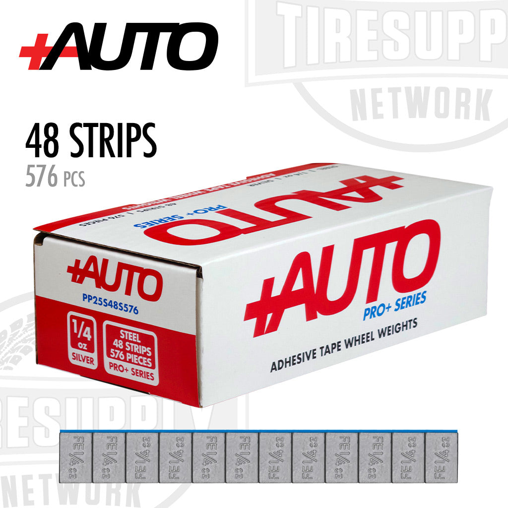 +AUTO | Steel 1/4 oz Stick-On Adhesive Tape Wheel Weight - 48 strips | 576 pcs | Silver (PP25S48S576)